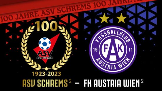 //Facebookveranstaltung 100 Jahre ASV Schrems die Veilchen kommen! ASV Schrems² – FK Austria Wien² Der ASV Schrems (1. Landesliga NÖ) feiert in diesem Jahr sein 100-jähriges Bestehen und wir haben ein besonderes Highlight für euch geplant! Der Bundesligist FK Austria Wien, einer der erfolgreichsten Klubs in Österreich, wird zu einem großen Freundschaftsspiel ins Waldviertel kommen. Sowohl die Profi-Herrenmannschaft als…